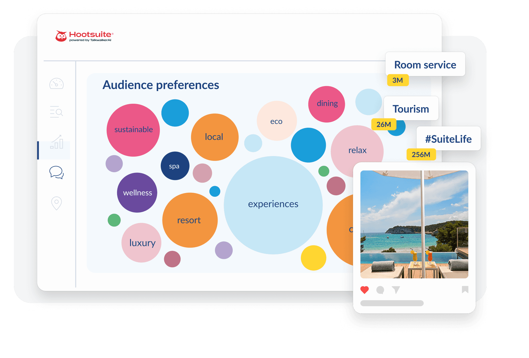 Hootsuite powered by Talkwalker AI helps hospitality brands understand what guests are saying, feeling, and sharing in real time. Get all the data-driven insights you need to protect your brand’s reputation, sharpen your marketing, and drive demand.
