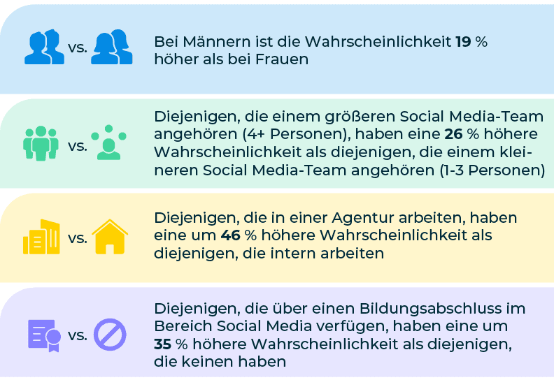 Es macht Sinn, dass Social-Media-Marketingfachleute, die eine Gehaltserhöhung erhalten haben, mit der sie zufrieden waren, in ihrem Job glücklicher sind als diejenigen, die eine Gehaltserhöhung erhalten haben, mit der sie enttäuscht waren.