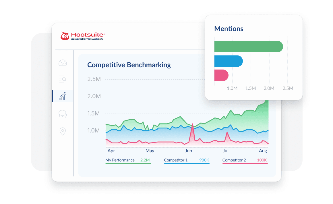Obtén visibilidad instantánea de las noticias de última hora, las conversaciones sociales y la cobertura televisiva con ayuda de Hootsuite, con la tecnologia de IA de Talkwalker. De pilas de datos a ideas claras: tu marca superará a competidores y crisis.
