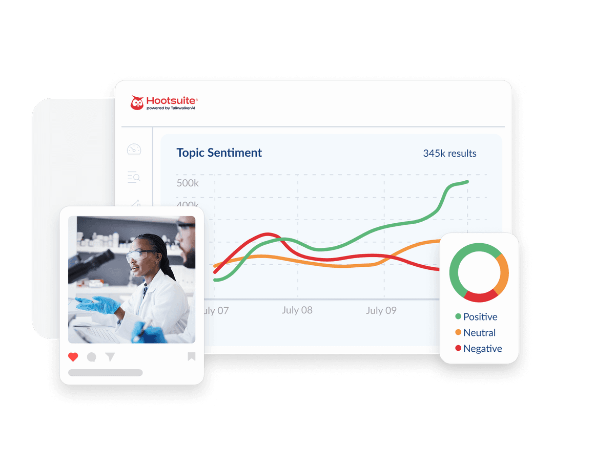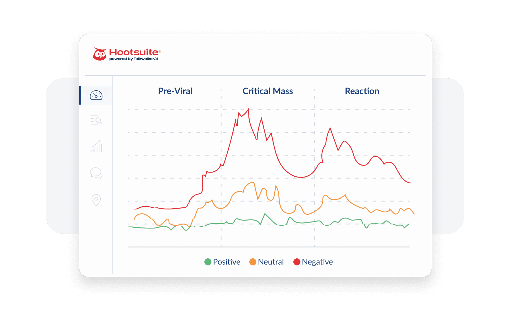 Protect your brand’s reputation effortlessly with real-time mention alerts, review management, and proactive sentiment tracking. It’s all in Hootsuite powered by Talkwalker AI.