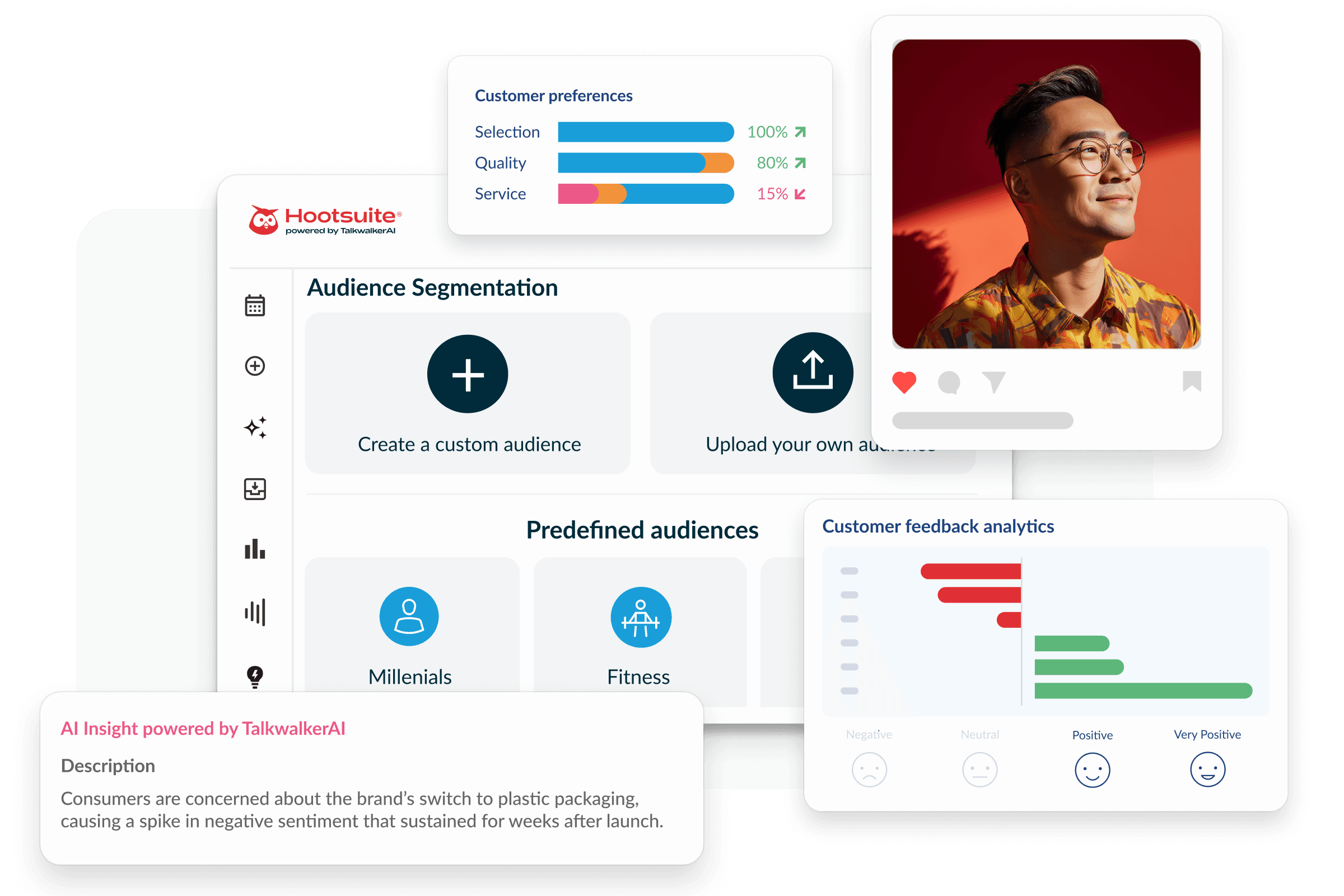 Request a demo to see how Hootsuite powered by TalkwalkerAI gives you complete customer intelligence for faster, smarter decision-making.