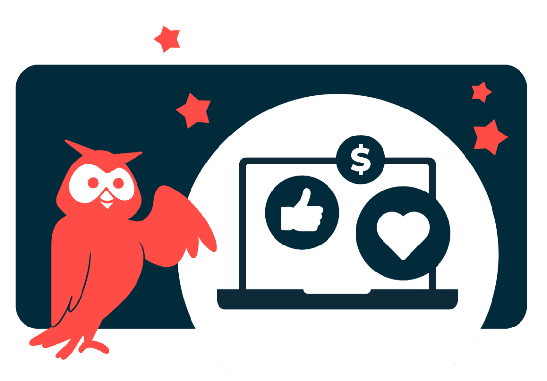 Use nosso kit de marca para afiliados e personalize seu conteúdo com a icônica coruja vermelha.